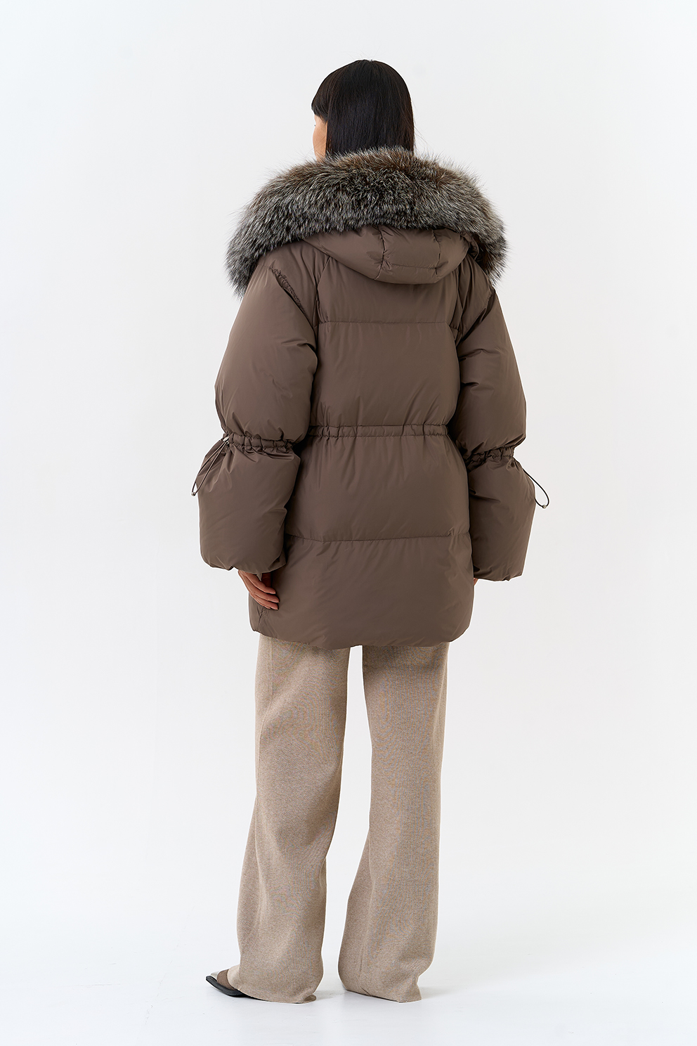 Крой воротника - капюшон, отделка чернобурка